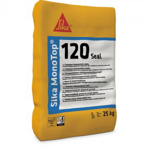 Sika MonoTop®-120 Seal е 1-компонентен хидроизолационен разтвор, съдържащ специални проникващи кристализиращи добавки, които запечатват бетона и не позволяват проникване на вода.
