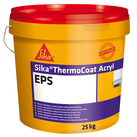 Sika® ThermoCoat Acryl EPS е хидрофобна, акрилна, мазилка армирана със специални фибри, предназначена за крайно, декоративно покритие при топлоизолационни системи. Произвежда се в бял цвят, но може да се оцветява в някой от цветовете, посочени в цветния каталог на Sika®. Sika® ThermoCoat Acryl EPS F-1.5 има фина крайна повърхност. Sika® ThermoCoat Acryl EPS R-2.0 има груба крайна повърхност.