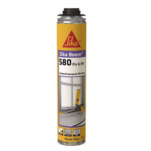 Sika Boom®-580 Fix & Fill е 1-компонентна, експандираща, полиуретанова пяна, за професионална употреба с пистолет. Втвърдената пяна може да се реже, шайфа и боядисва. За вътрешна и външна употреба.
