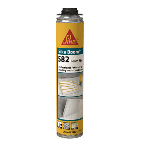 Sika Boom®-582 Foam Fix е 1-компонентна, пистолетна, разширяваща се, полиуретанoва пяна, осигуряваща добра адхезия към различни видове основи. Sika Boom®-582 Foam Fix е подходяща за ефективно и икономично, перманентно залепване на изолационни и гипсови плоскости.