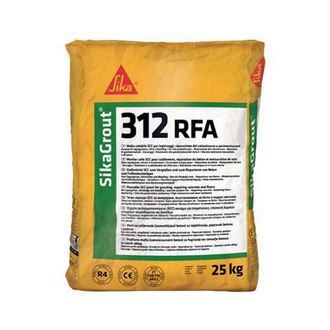 SikaGrout®-312 RFA е еднокомпонентен, многофункционален разтвор на циментова основа с изливна консистенция (SCC) за ремонт на индустриални подове, възстановяване или увеличаване на напречните сечения на бетонни елементи, прецизно замонолитване и анкериране. Съгласно инструкциите, консистенцията на разтвора може да се променя чрез промяна на количеството на направната вода.